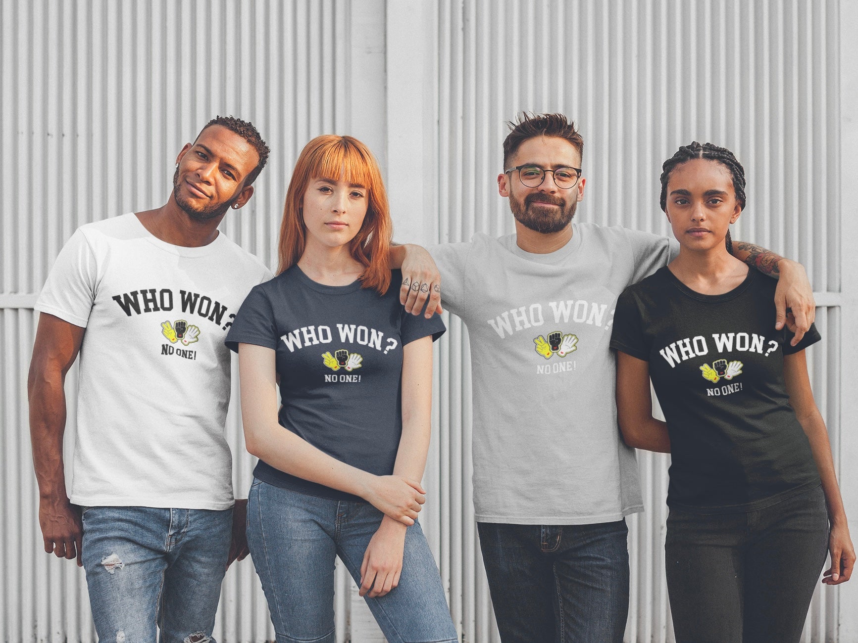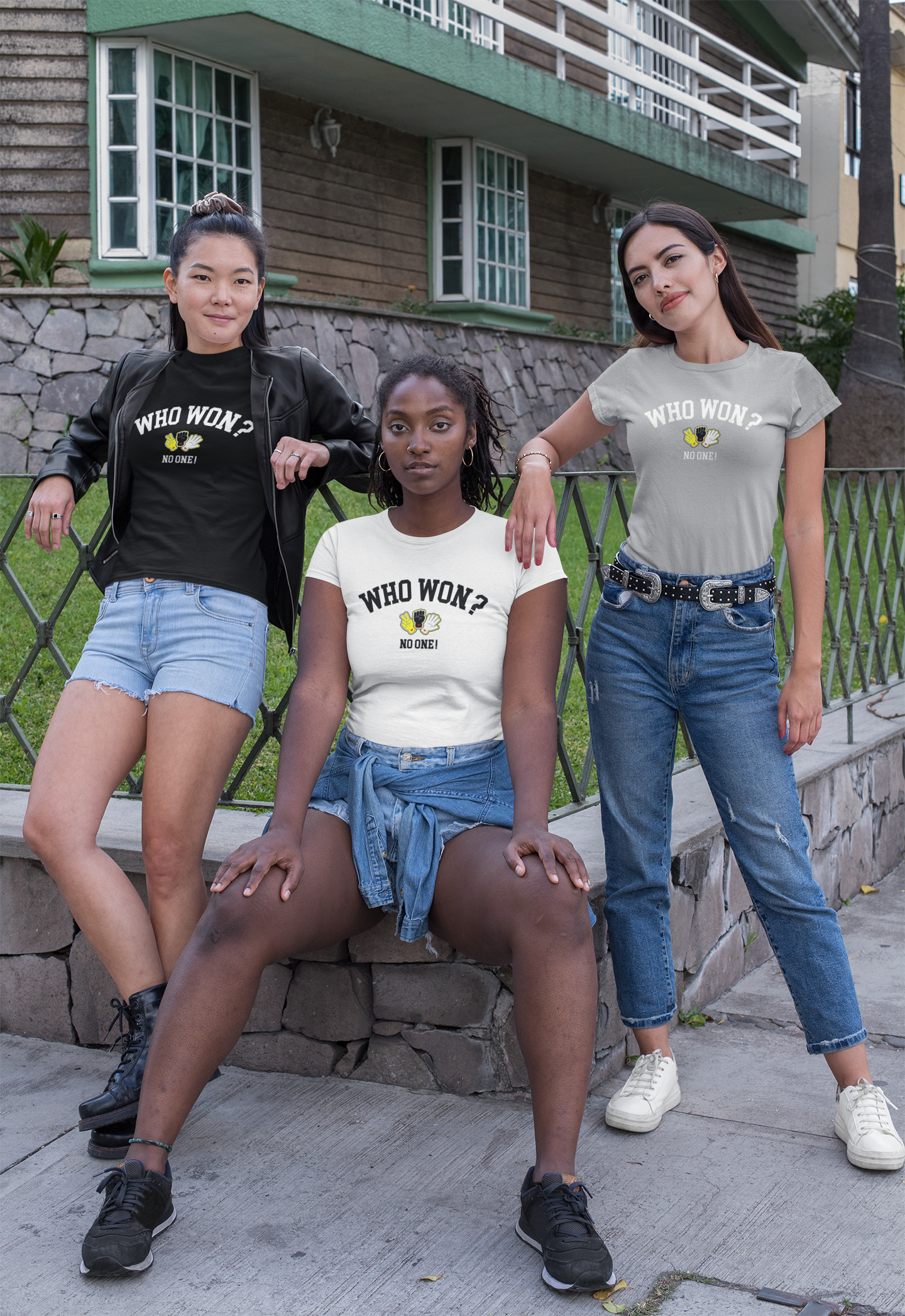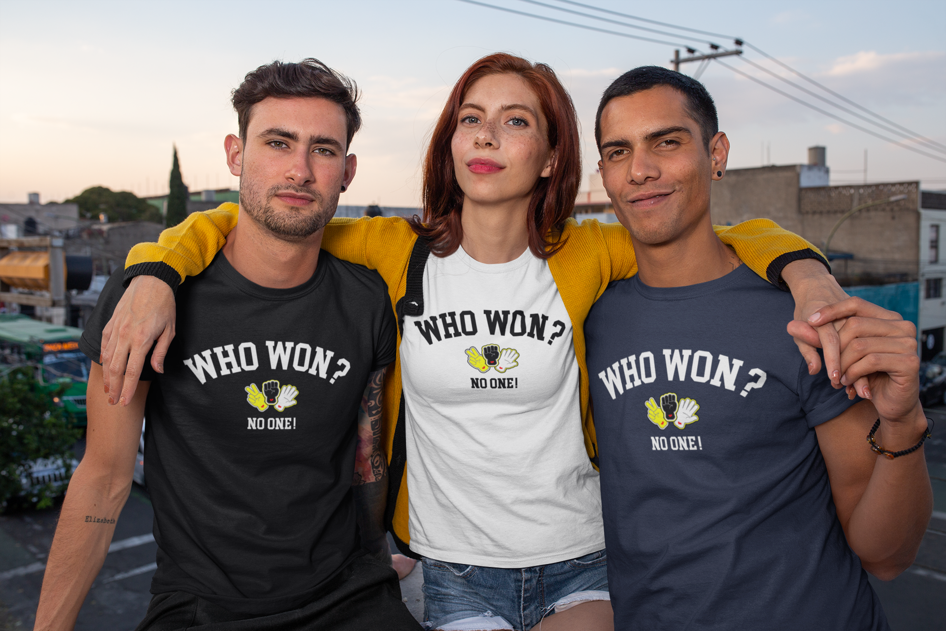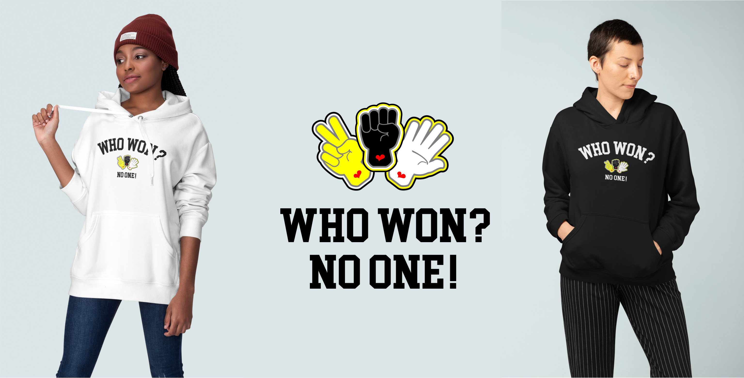 "Who won? No One!" is more than just a question and answer. It's a message for those who want to drive change. It's a message for those who want to stand against discrimination. There are far too many racial conflicts and tensions in today's society. We want to do our part in the constant battle against discrimination by posing the question: when we fight each other as a human race, who wins? Nobody.